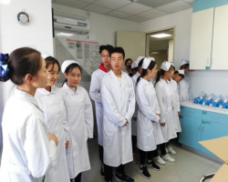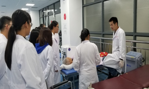在康复治疗专业员工参观学习过程中,康复科医生首先向大家介绍了康复治疗的工作任务,即在病人临床治疗完成后,帮助病人有尊严地融入到人群中,用尽一切方法和手段尽可能让病人身体恢复到患病前的状态,身体功能没有障碍,而对于高龄人群而言,康复则是让他们的生活可以自理;另外还给同学们介绍了康复治疗常用的一些操作及设备,让大家对康复治疗工作有了进一步的认识。而护理这边,主要参观了呼吸科和心血管内科病房,科室护士长们向同学们介绍了本科室概况,以及护士的主要工作方式和工作职责,之后带大家参观并介绍了护士站、治疗室、操作室及部分病房的功能和设置,另外还近距离参观了护理模型,同时护士长针对一些简单的护理操作,给大家作了详尽介绍。