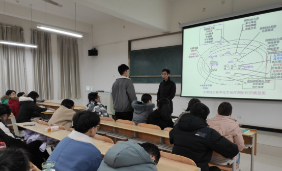 王中兴老师曾荣获陕西省首届高校课堂教学创新大赛三等奖,课堂教学形式灵活,广受师生好评。王老师以《微生物的耐药性》为题进行示范课展示,首先对抗生素的概念和种类做了讲解,进一步说明抗生素和微生物的关系;接着以“假如你是一个微生物,如何在抗生素的攻击下活下来?”为思考题引导员工思考,并以奖惩游戏互动的形式调动员工的积极性,增强员工的课堂参与感;最后根据员工的分享,进一步引出微生物的耐药性概念及其机制,同时对员工没有答出的点做针对性详细讲解。王老师从员工课堂教学需求出发,通过寓教于乐的课堂形式,引导员工主动思考引出知识点,既创新了课堂形式还锻炼了员工思维能力,促进了员工对知识点的理解。