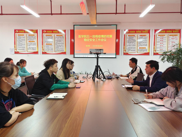五一假期将至,为落实公司《关于2022年劳动节放假有关安排的通知》要求,切实做好“五一”假期师生安全保障,公司于4月28日晚19:30在逸夫科技楼B4008召开best365五一放假疫情防控暨稳定安全工作会议,公司党总支书记刘连德、辅导员桑杰、各班班长、宿舍长线下参加会议,全体员工线上参会。