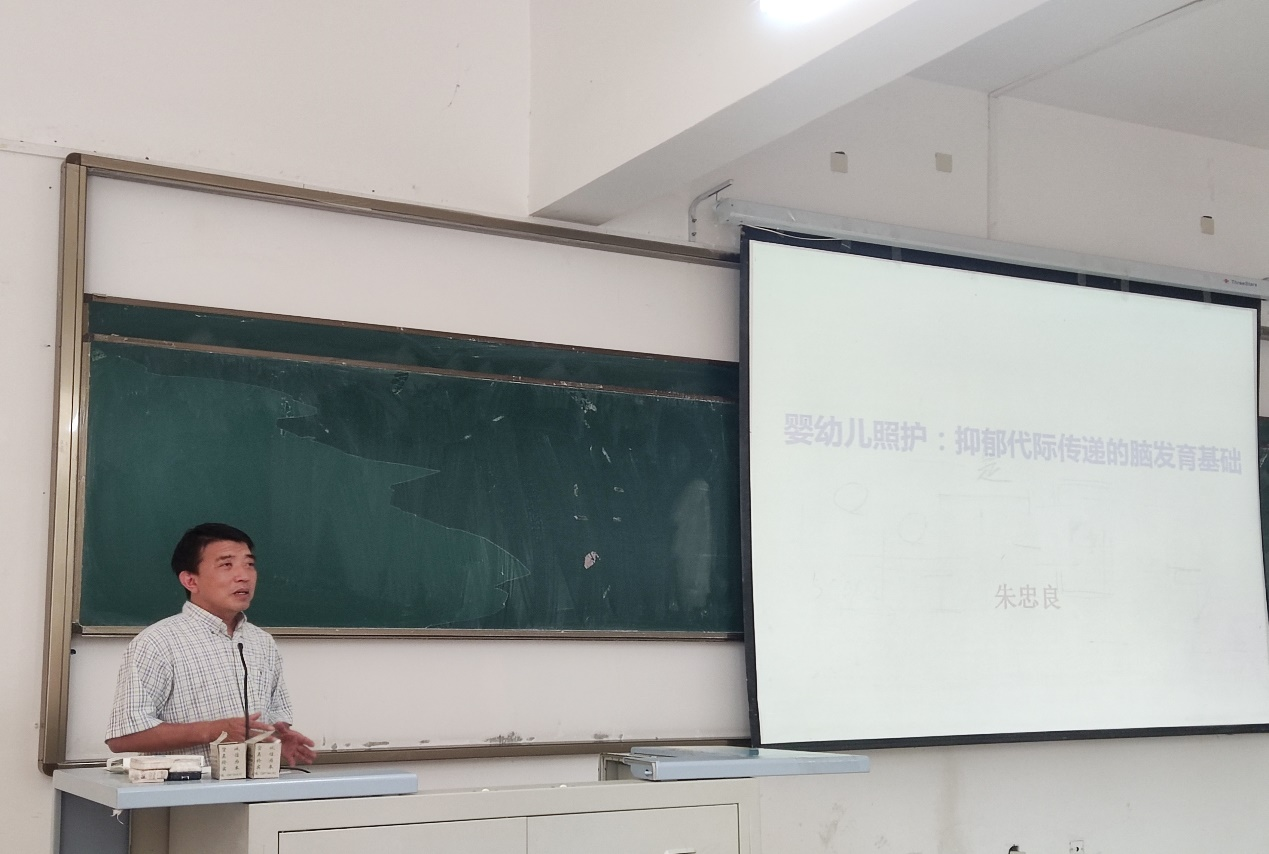 朱忠良教授以“抑郁代际传递的脑发育基础”为题,为老师和同学们献上了一次精彩的学术讲座,间讲座既紧扣学术前言又浅显易懂,既关注身体健康又强调心理健康,在交流环节,老师和同学们纷纷与朱教授进行学术交流,朱教授一一给予了科学详细的解答。