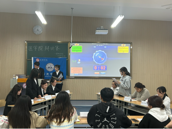 辩论赛第二场,双方的辩题是“面对精神内耗我们应该怎么办。”正方的观点“面对精神内耗我们应该鞭策自己”,反方的观点是“面对精神内耗我们应该接纳自己”。由正方辩手:韩赵至丞、蒲乐乐、燕雪、惠格格对阵反方辩手:雒泽灵、王柯萱、熊若琰、柳淑洁。正方开门见山,他们认为“面对精神内耗我们应该鞭策自己,鞭策自己可以改变现状,从而成就更好的自己。”而反方则认为“面对精神内耗我们应该接纳自己,要正确认识自己,接纳并不完美的自己。”双方辩手都使出浑身解数,你来我往,妙语连珠,努力地找出对方逻辑中的漏洞,据理力争地维护自己的观点。在总结陈词阶段,正反双方辩手清晰的思路和巧妙的陈词给观众留下了深刻印象。随后,评委们均指出双方都存在例子不足、推论进行不彻底的问题。在双方激烈的辩论下,正方获得了本场辩论赛的胜利。