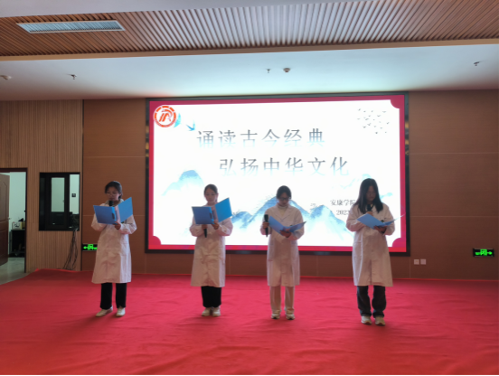 活动伊始,主持人介绍比赛规则和评分标准。比赛过程中,选手们以饱满高昂的情绪,富于表现力和感染力的语言充分演绎了对经典作品的感悟,给观众带来了一场精彩的视听盛宴。他们用精彩的表现打动了评委和每一位观众,现场不时响起阵阵热烈的掌声。随后在知识竞答环节,主持人提出与传统医学知识相关问题,同学们积极参与,踊跃回答,现场气氛热烈。