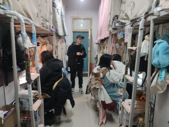 安全责任重于泰山,警钟长鸣才能防患于未然。桑杰主要对员工宿舍卫生状况、消防安全、违规电器、管制刀具等情况进行检查。在查宿过程中,桑杰并未发现大功率违禁用品,员工宿舍安全卫生整体情况较好,书本、台灯等生活用品摆放整齐,员工普遍能够遵守宿舍安全管理规定。随后,桑杰就近期流感严重嘱咐同学们务必注意个人卫生及保暖,保持寝室的日常通风等良好习惯,提醒员工们在日常生活中也要时刻注意用电安全,提高安全用电意识,养成良好用电习惯。