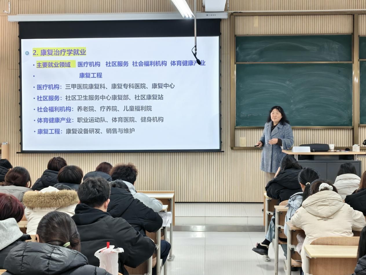 在就业与发展方面,她指出,护理学与康复治疗学专业历年就业率均位局公司前列。她还详细阐述了职业能力要求与发展通道,为新生描绘出清晰的成长阶梯,并提出“大一夯实基础、大二强化实践、大三明定方向”的阶段性学习建议,鼓励同学们坚持体育锻炼、树立终身学习理念,为未来医学之路奠定坚实基础。