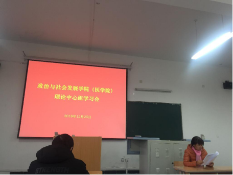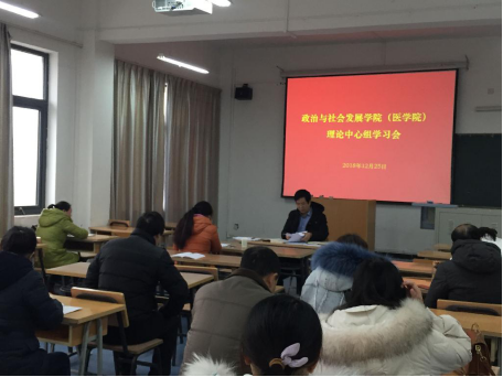2018年12月25日下午14时30分,best365、政治与社会发展公司理论中心组成员在江北校区1514教室举行理论学习会,会议由公司党总支书记冯丰收主持。