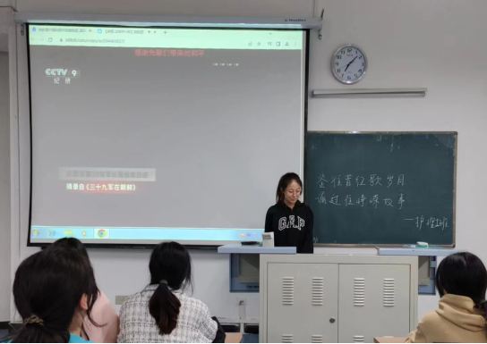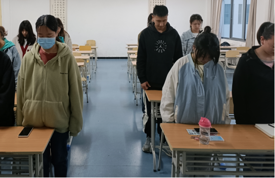 各班团支部书记组织青年团员观看视频,带领青年团员了解革命先烈光荣事迹,学习和传承革命先烈精神,随后全体员工起立默哀,向英雄致敬。22级护理学一班团支部书记孙悦讲到从过去的血雨腥风、民不聊生到如今的国泰民安,幸福安康,离不开负重前行的革命先烈,我们要继承和弘扬民族精神,不怕艰险、知难而上,艰苦奋斗,努力实现先烈们未完成的革命事业。22级康复治疗学一班团支部书记徐梦玉表示陵园里呈现的名字不仅仅代表着牺牲的烈士,更象征着我国人民反抗压迫、反抗侵略的不屈精神,作为青年团员,我们要扛起新时代之重任,为实现中华民族伟大复兴的中国梦而不懈奋斗。
