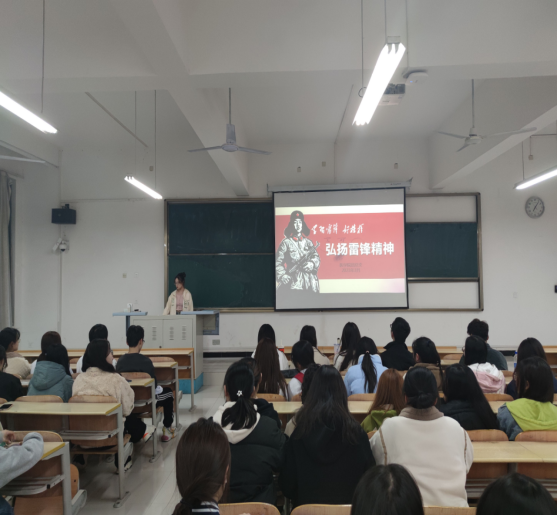 郭雯从雷锋精神的性质、具体内容、时代内涵、重要意义以及学习《习近平总书记在“把雷锋精神代代传承下去——纪念毛泽东等老一辈革命家为雷锋同志题词六十周年”座谈会上的重要讲话精神》五个方面对雷锋精神展开讲解。她指出广大团员青年要把学雷锋做为增强共青团员先进性的实践载体,同学们要弘扬共产主义道德,在服务同学、奉献社会中展现先进风貌。她强调成长于承平日久、顺风顺水和平年代的青年,更要葆有敢于斗争、善于斗争的硬本领,彰显“不怕牺牲,英勇奋斗”的雷锋精神。同学们纷纷表示,今后会继续投身于各项志愿服务,牢记“空谈误国,实干兴邦”,用实打实的行动为中国式现代化添砖加瓦。