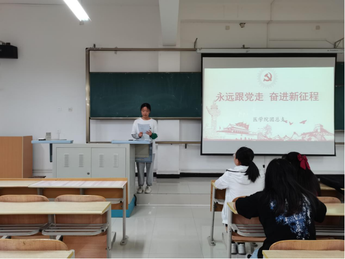 活动开始,2020级学入党积极分子赵怡欣和孙文洁带领同学们领学了习近平总书记在庆祝中国共产主义青年团成立100周年大会上的讲话。随后同学们展开热议。21级护理学1班团支书张雯清表示:作为一名团支部书记,一名入党积极分子,我会牢牢记住习近平总书记的讲话“做青年友,不做青年“官”,多为青年计,少为自己谋”,带头学习马克思主义理论,树立共产主义远大理想和中国特色社会主义共同理想,自觉践行社会主义核心价值观,大力弘扬爱国主义精神;要做刻苦学习、锐意创新的模范,带头立足本职工作、苦练本领、创先争优,努力成为护理行业骨干、青年先锋。21级康复治疗学1班副班长尚柄宇表示:习近平总书记讲话全面回顾了百年来共青团坚定不移听党话、跟党走的青春历程,充分肯定共青团在党的领导下,团结带领一代代团员青年为实现中华民族伟大复兴中国梦作出的重要贡献。我们作为一名21世纪的团员,要在各方面都时刻起到模范带头作用,在新时代新征程上,在美好的青春年华里要展示青年的朝气和活力,要用奋斗书写理想的新篇章。