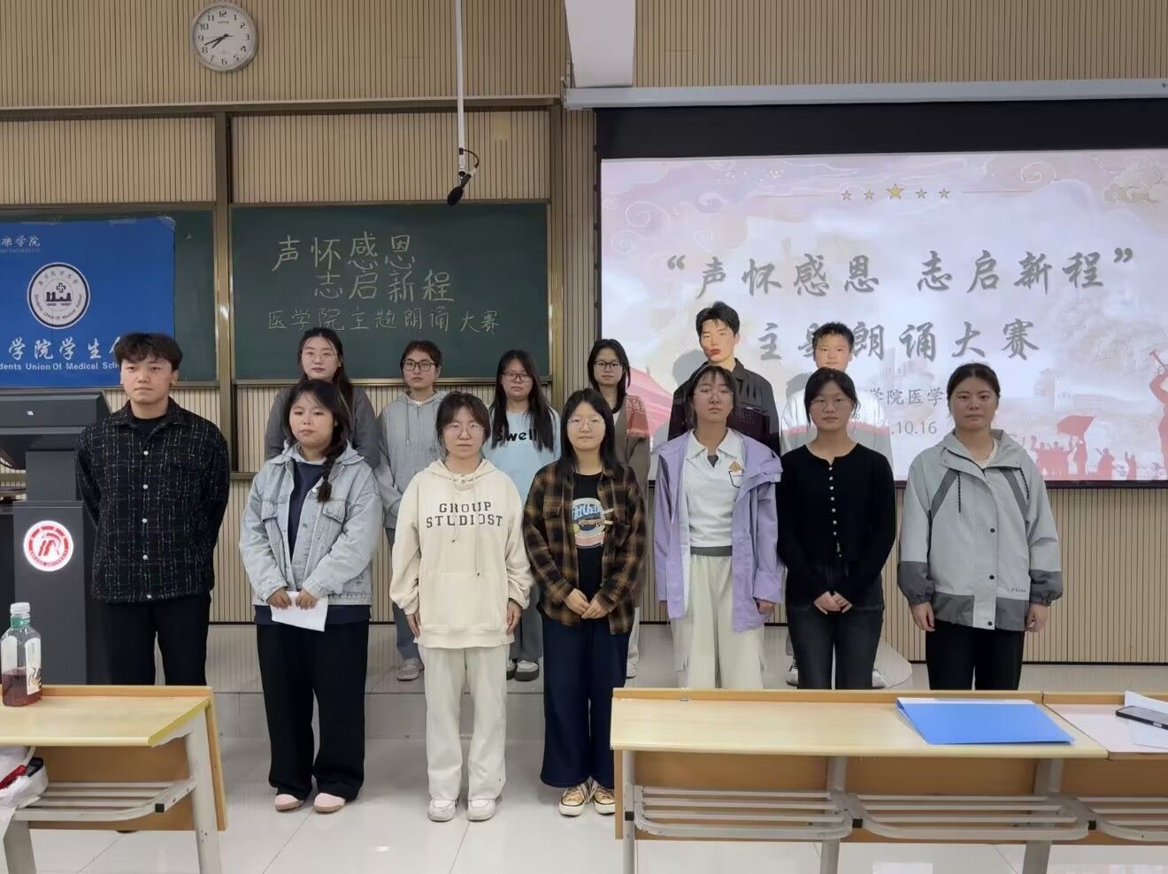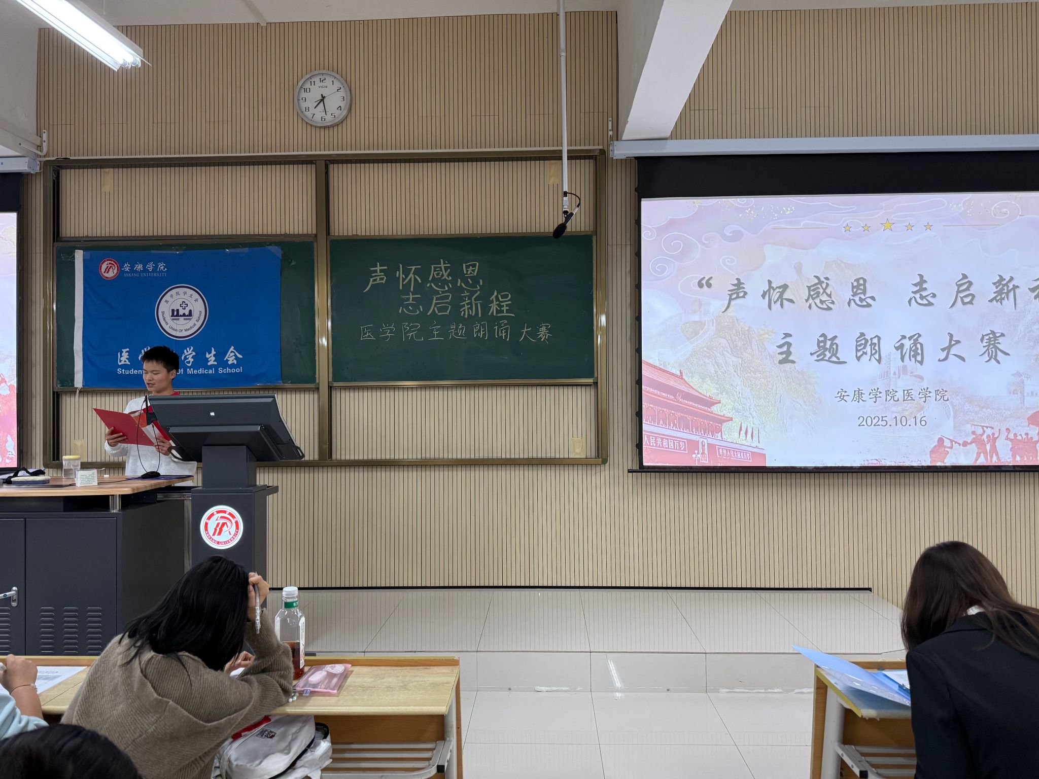 为厚植感恩情怀,凝聚奋进力量,best365于10月16日举办以“声怀感恩,志启新程”为主题的朗诵比赛,本次比赛由2025级康复治疗学2班张乐轩主持。