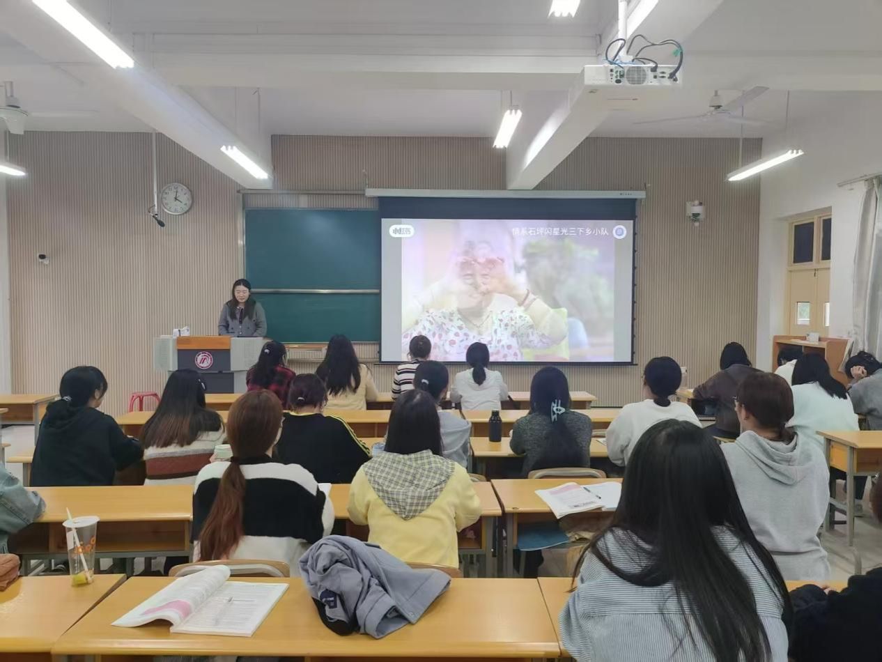 各团支部以开展人口老龄化国情教育与弘扬孝亲敬老文化的关键意义切入,组织全体团员观看孝亲敬老文化的公益广告或短视频,直观感受新时代孝亲敬老的内涵与表现。团总支书记从多维度讲解我国人口老龄化现状,并且分析了人口老龄化未来趋势,解读现行养老政策,引导同学们建立对人口老龄化国情的基本认知。