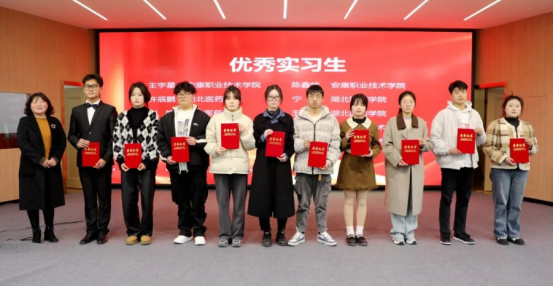在公司护理实习生孙琴琴、湖北医药公司实习生许辰鹏的主持下,表彰大会拉开序幕。公司张佳淼同学、朱叶同学荣获优秀实习生表彰,张佳淼同学分享了实习心得,对实习期间遇到的困难、挑战等进行汇报,并由衷表达了对临床带教老师们的感谢以及对专业的热爱。