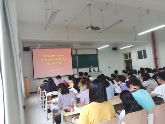 通过考风考纪教育,进一步强化了同学们的纪律意识和诚信自觉,相信同学们会以良好的心态、扎实的准备迎接未来的各类考试、考验。希望同学们在期末考试中取得优异成绩,祝愿全体实习生在实习期间能有新收获、新成长。
