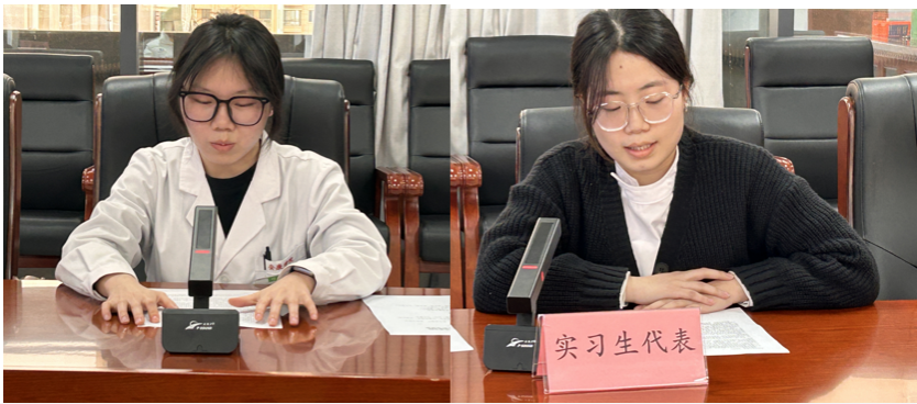 在交流环节,实习生代表结合各自轮转科室的实践经历,分享了临床实习工作中的收获与感悟,并就职业方向规划、专业技能提升等方面与校院领导、带教老师进行了面对面交流。同学们普遍表示,将不负公司与医院的联合培养,以更积极的态度投入后续实习,不断增强专业本领,走好职业路径。