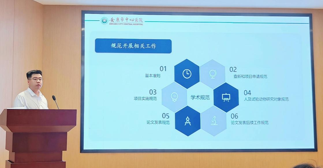 随后,朱亚男教授以“如何进行临床科研选题”为题,从科研的出发点、发现问题与解决问题、提出理论及注重转化等方面,结合临床案例及其科研团队实际开展的科研项目做了一场内容丰富、生动有趣、富有启发的讲座。随后,科教科王慧娇医师和陈伟医师围绕“科研工作如何开展”为中心,分别从课题申报、伦理审查、科研诚信等方面给大家做了精彩讲座。