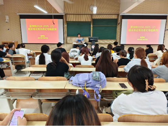 黄勇作总结讲话。他提出三点要求:一是诚信立身,守住行医第一关;二是规则在心,敬畏考场如敬畏手术台;三是张弛有度,切实抓好期末复习。他勉励全体同学要共同努力,营造风清气正的考场环境。