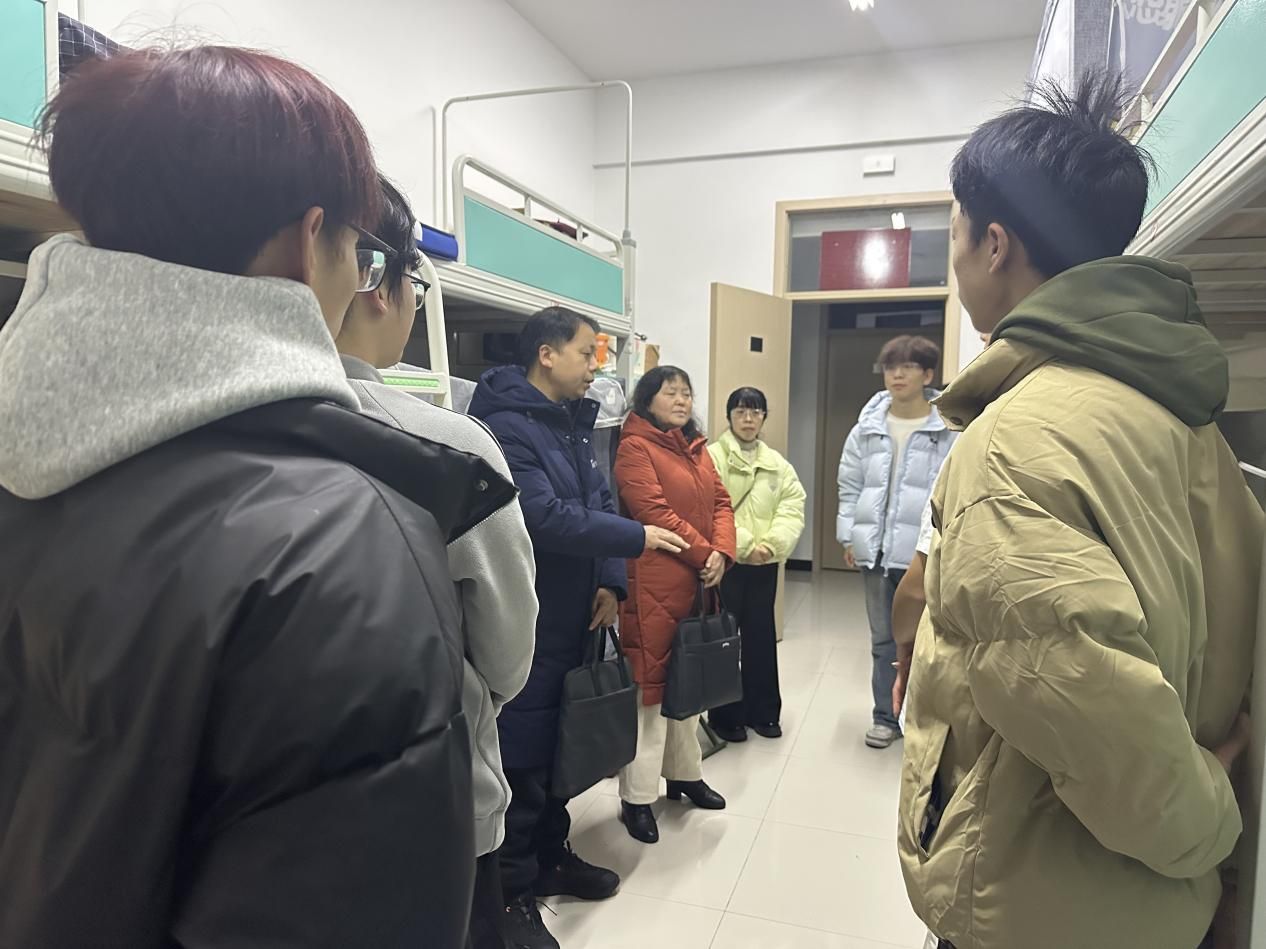 走访中,领导们与同学们亲切攀谈,仔细询问大家的期末复习规划、备考难点以及生活中的需求,耐心倾听员工在学习节奏调整、知识点梳理方面遇到的问题。黄勇结合医学专业的学习特点,指导同学们梳理学科重点、搭建知识框架,鼓励大家利用好考前时间查漏补缺;同时叮嘱大家注意劳逸结合,保持规律作息,以饱满的精神状态投入复习。谢娟平以自身教学和求学经验为例,提醒同学们重视期末考核的检验作用,切勿抱有侥幸心理,遇到学业困难要及时向任课老师和辅导员反映,还细心查看了宿舍的学习环境,叮嘱大家营造安静有序的宿舍学习氛围。