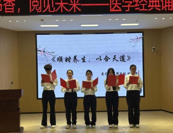 活动开篇,主持人阐明比赛的流程与评分标准,确保赛事公平公正开展。随后,各参赛小组依次登台,围绕《医宗金鉴》《黄帝内经》《肘后备急方》《金匮要略——桂枝汤》《本草纲目》《难经》等中医典籍的诵读,他们用独特的方式、真挚饱满的情感,将医学经典的文化与思想完美展现,为现场观众呈现了一场精彩绝伦的视听盛宴。