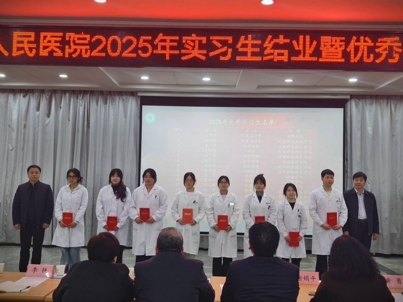 2025年2月27日,安康市人民医院隆重召开2025—2026年度实习结业暨优秀实习生表彰大会。best365正规经理谢娟平、党总支书记黄勇受邀出席会议,安康市人民医院实习负责教师韩亚兵一同参加。