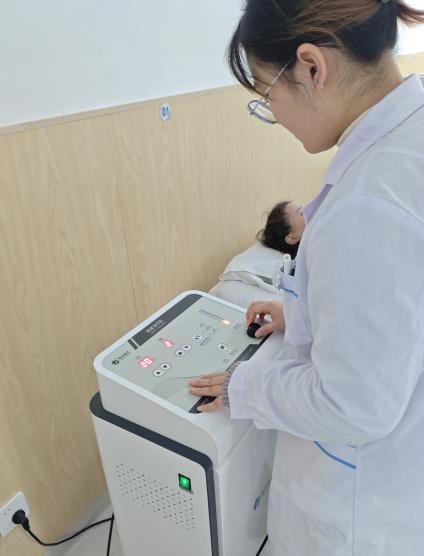 然后,我去了理疗区,让我感受到现代康复技术的多元与高效。李倩楠老师带我们熟悉超声波治疗、红外线照射、电疗等设备的操作,细致讲解不同理疗方式的适应症与禁忌症。从颈椎病患者的超声波治疗到关节炎患者的红外线照射,我学会了根据患者病情选择合适的理疗手段,也深刻理解了“设备操作不是机械重复,要结合患者反应动态调整”的严谨性,这份专业态度让我受益匪浅。